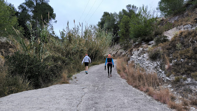 El recorrido cuenta con un poquito de todo, subida entre bancales de olivos, senda hasta el "pla de Blacons", un tramo aéreo siguiendo la cresta hasta el castillo y un tramo de 7 kilómetros por pista de cemento y asfalto donde hemos aprovechado para trotar y disfrutar de un entorno especial, con el pantano de Guadalest como protagonista. No podemos pedir más, un poco de todo, a gusto del consumidor.