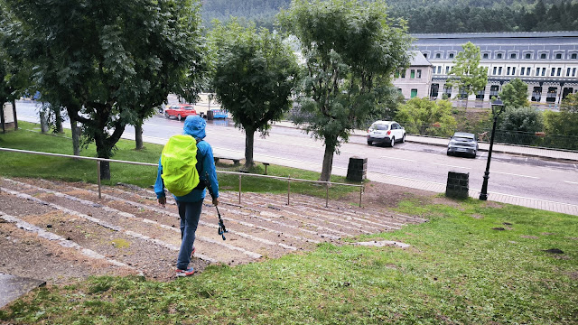 12. Hacemos una bajada agradable por el bosque, hasta llegar a la parte posterior del pueblo, donde cruzamos un pequeño puente que canaliza las aguas de los diques de contención. Desde allí, continuamos el descenso hacia el pueblo.
